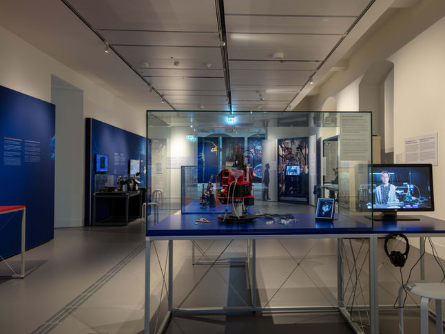 Die Besucher*innen werden auf eine immersive Reise durch fünf unterschiedlich gestaltete Räume geführt, die die Entstehung und Entwicklung wissenschaftlicher Erkenntnisse thematisieren. Jeder Raum nutzt eine Kombination aus auditiven, visuellen und taktilen Elementen, um ein multisensorisches Erlebnis zu schaffen. Ein innovatives Bodenleitsystem integriert taktile Objekte in die Ausstellung und ermöglicht eine barrierefreie Navigation durch die Vielzahl an interaktiven Stationen, die sowohl digitale als auch analoge Formate umfassen. Hochwertig präsentierte historische Exponate und beeindruckende Mikroskopiegrafiken setzen ästhetische Akzente und sorgen für eine visuell ansprechende Inszenierung.